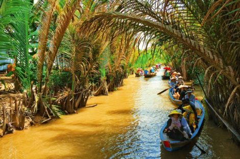 Cruise along small canals, visit floating markets, taste tropical fruits, and experience the authentic daily life of local people in the Mekong Delta.